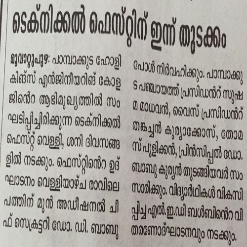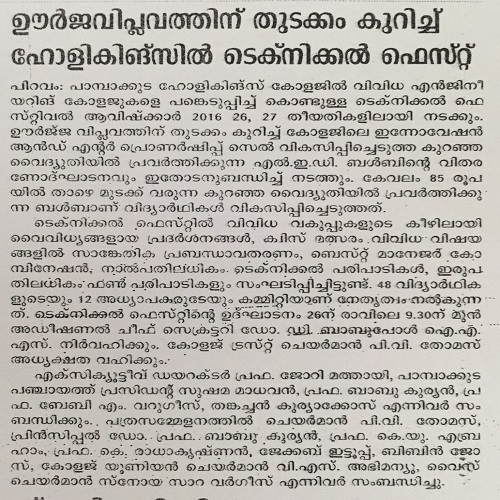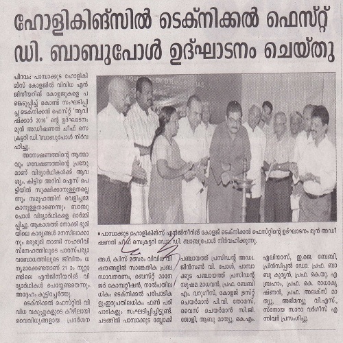 Aavishkar 2017Tech Fest 2017 "AAVISHKAR- 17" was inaugurated on 23th March 2017 at 10:00 AM.Chief Guest on the occasion was Sri.John Mathew M, GM(Works), HNL Kottayam.